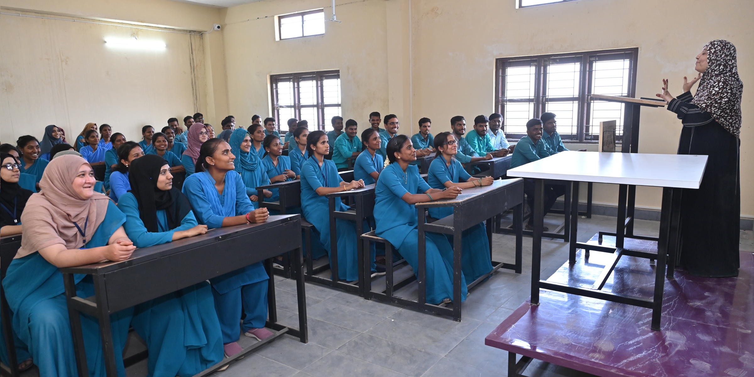 LECTURER HALL ( Vast 2 Lecturer halls accommodates 100 students each with green board and LCD projector facilities along with microphone and speaker systems )